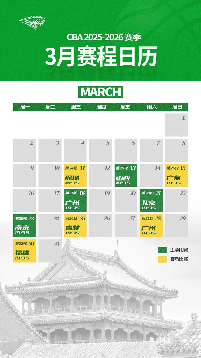 2025-2026赛季CBA常规赛辽宁本钢队赛程表来了